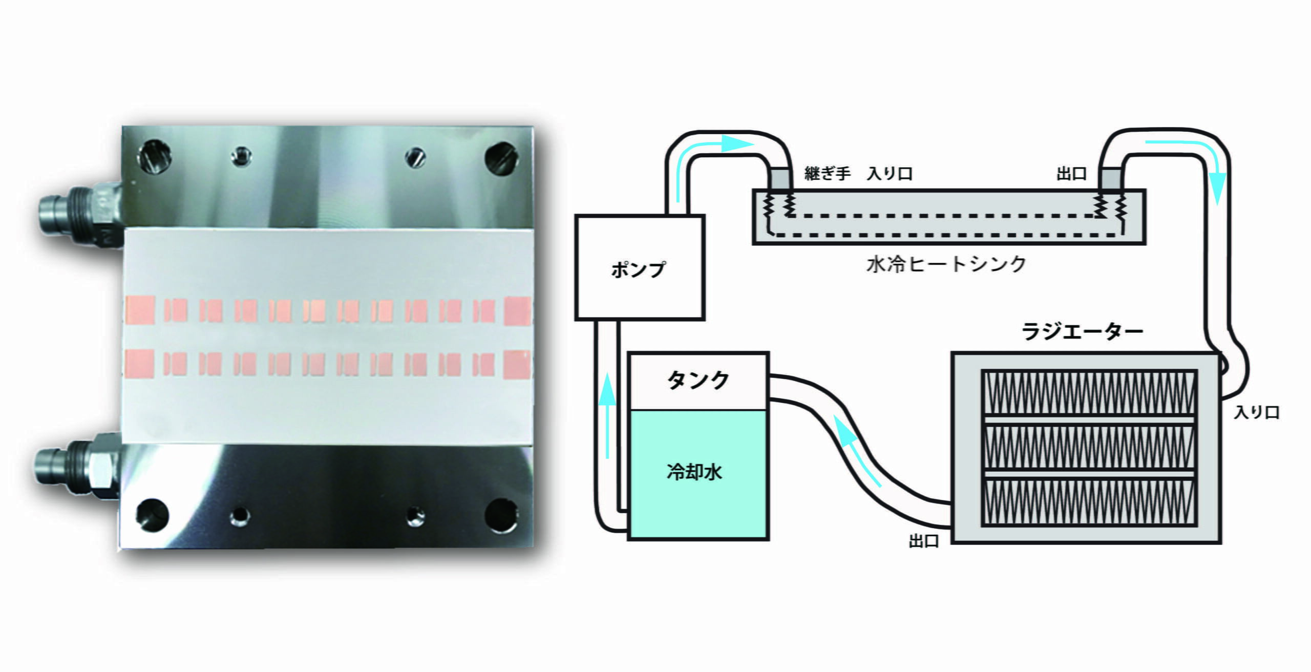 • 高い冷却性能: 水冷システム特有の高い放熱性能を最大限に活かし、空冷では難しい高発熱デバイスにも対応。